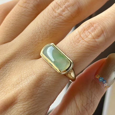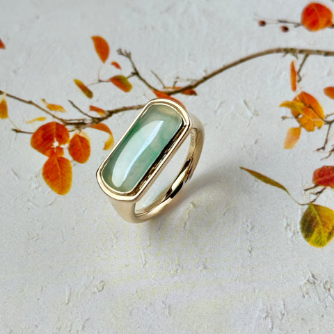 16.1mm Icy A-Grade Natural Moss On Snow Jadeite Saddle Signet Ring No. 162551
