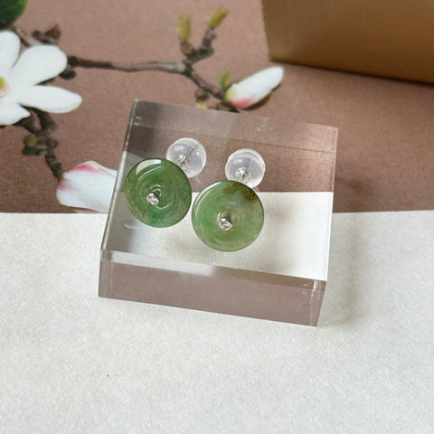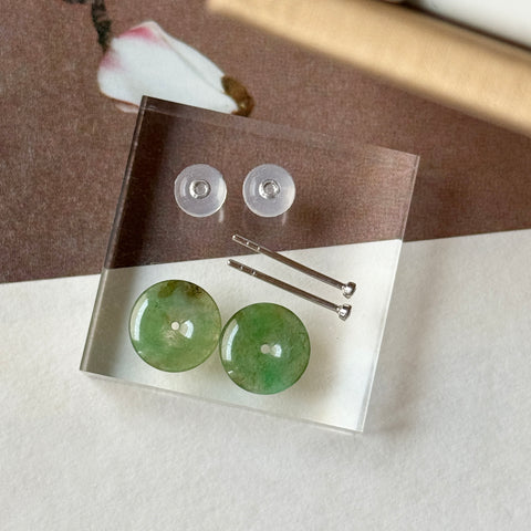 Jadeite with detachable 18k solid white gold diamond earring studs (D2:0.02 cts)