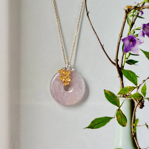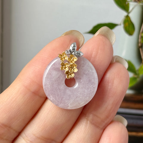Customised in 18k champagne/white gold and diamond (D1:0.02 cts) with YOKDEE signature osmanthus flower motif as a pendant. Bail inner diameter at 3.7 x 1.7mm.