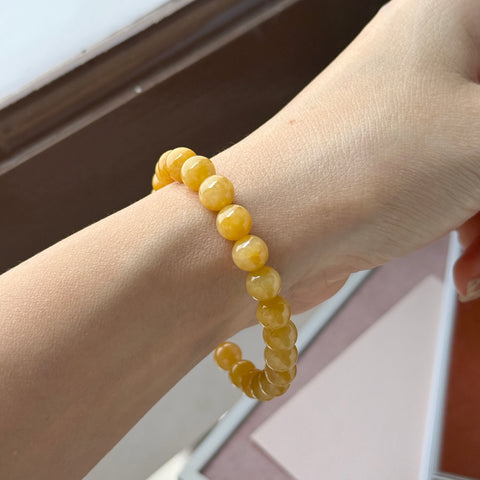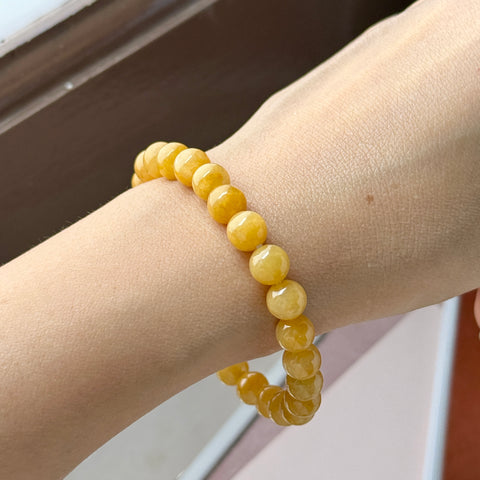 7.5mm A-Grade Natural Canary Yellow Jadeite Beaded Bracelet No.190489