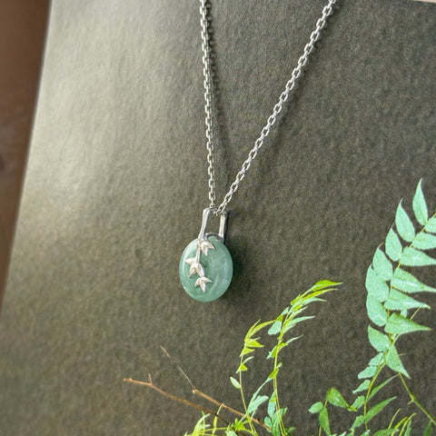 A-Grade Greenish Blue Jadeite Donut Bamboo Pendant No.172781