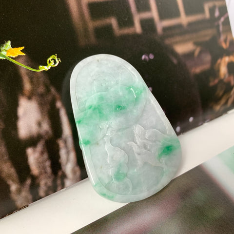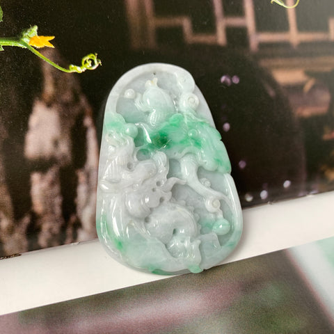 A-Grade Moss On Snow Jadeite Dragon Pendant No. 171092