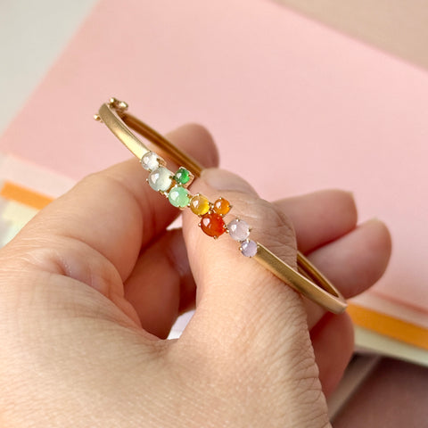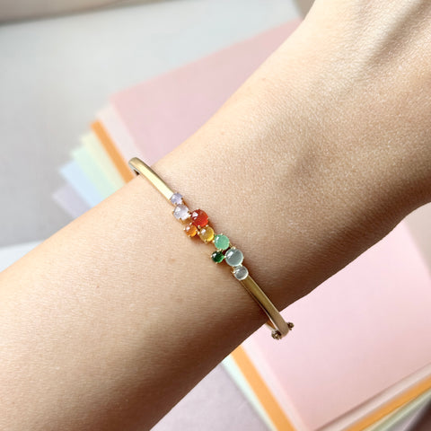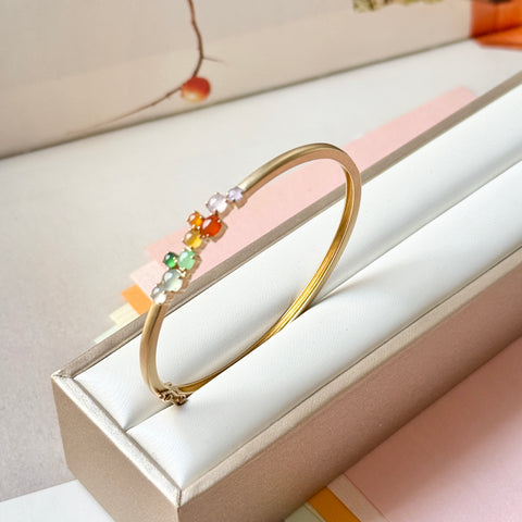 Jadeite mount in 18k champagne gold (matte finish) with tongue & groove clasp as bespoke hinged bangle/bracelet