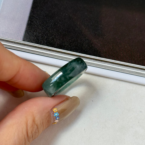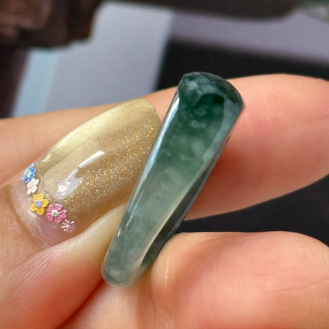 16.1mm A-Grade Natural Greenish Blue Jadeite Saddle Loaf Ring Band No.162553