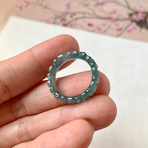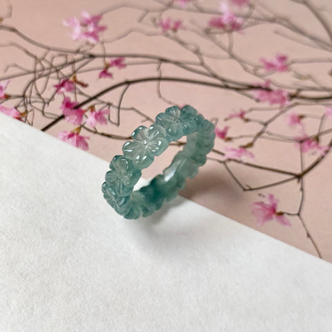 16.1mm Icy A-Grade Natural Bluish Green Jadeite Plum Blossom Ring Band No.162588