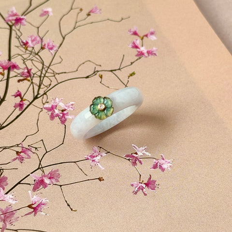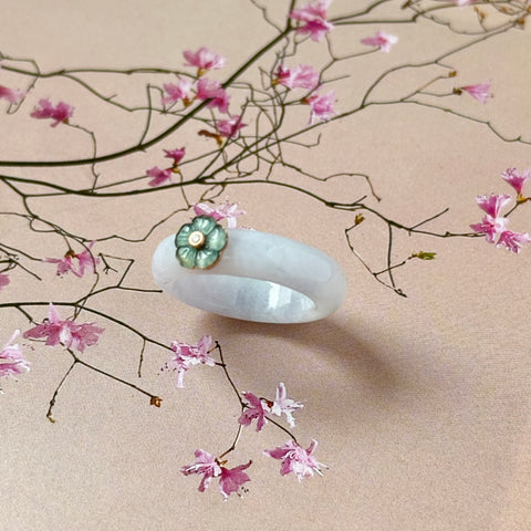 16.8mm A-Grade Natural Jadeite Joseon Dynasty Ring (Cherry Blossom) No.162559