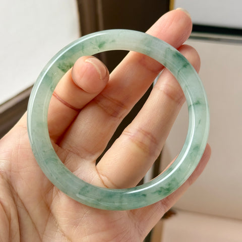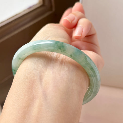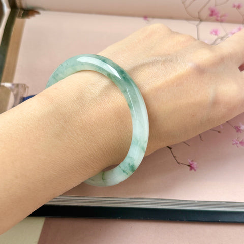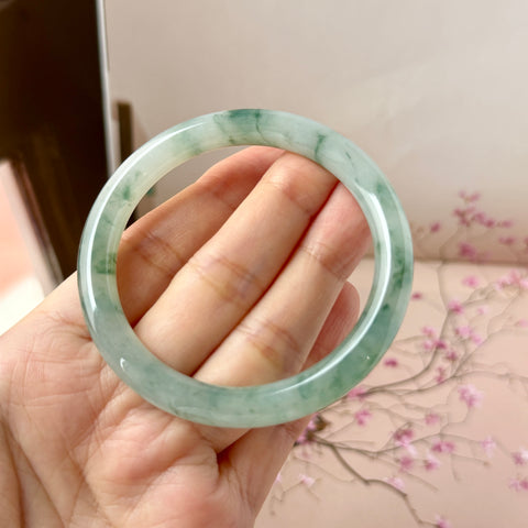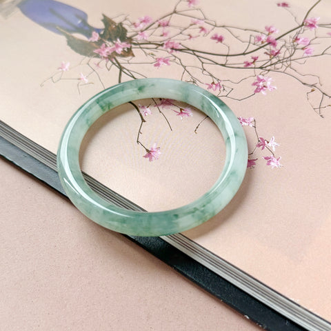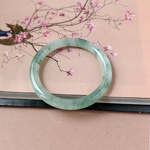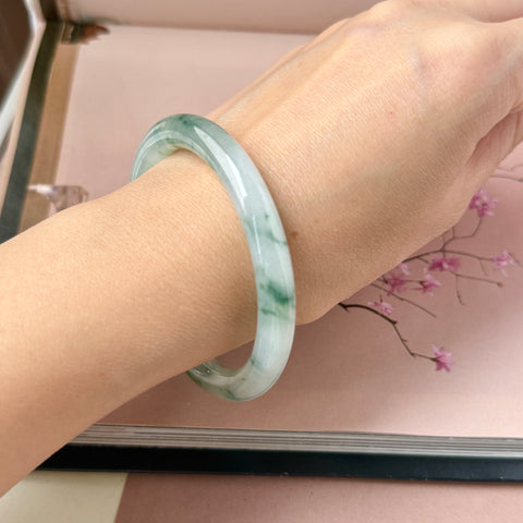 53.6mm A-Grade Natural Floral Jadeite Traditional Round Bangle No. 152168