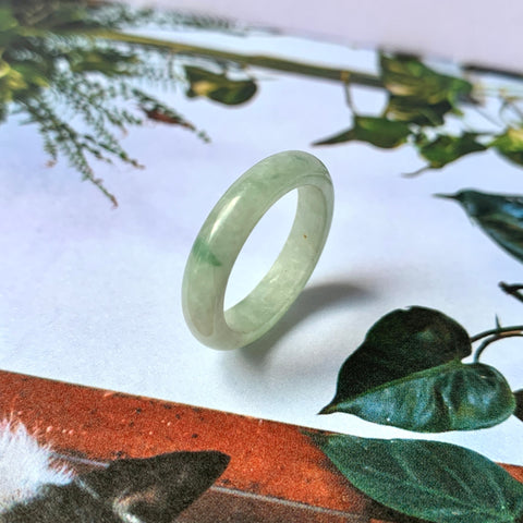 17.1mm A-Grade Natural Light Green Jadeite Abacus Ring Band No. 161462