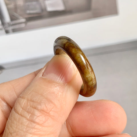 17.7mm A-Grade Natural Brown Jadeite Ring Band No: 161838