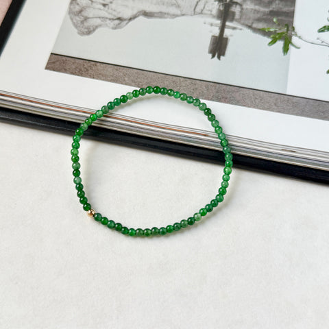 Jadeite beads string with elastic bands, center with 14k gold-filled ball as a bracelet.
