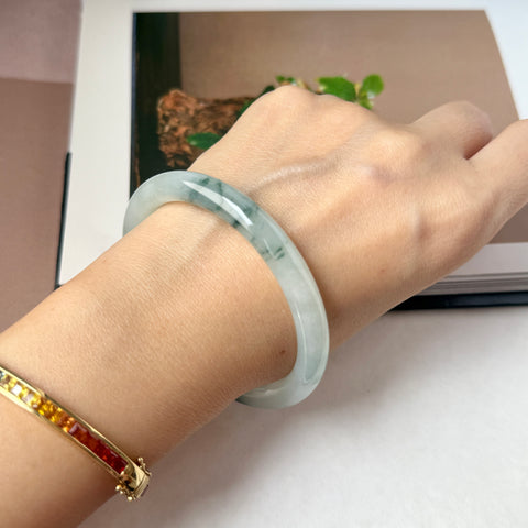 56.7mm A-Grade Natural Floral Jadeite Traditional Round Bangle No. 152158