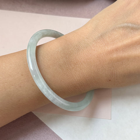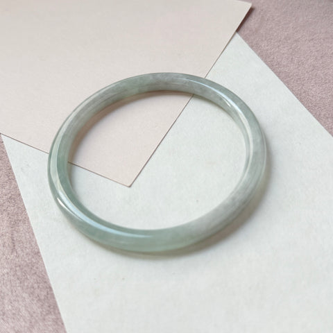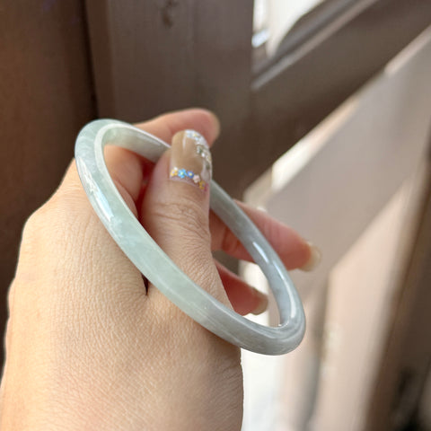 59.5mm A-Grade Natural Light Green Lavender Jadeite Traditional Round Slim Cut Bangle No. 152133