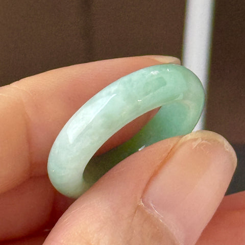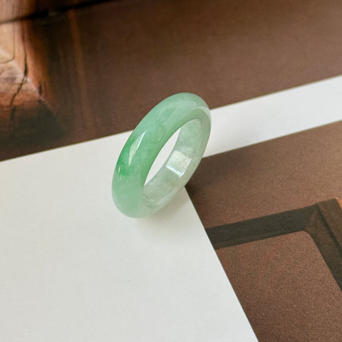 16.8mm A-Grade Natural Moss On Snow Jadeite Ring Band No. 162567