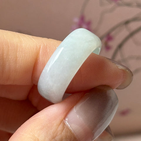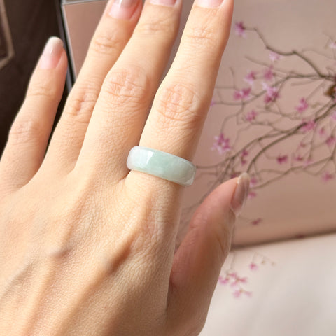 17mm A-Grade Natural Light Green Jadeite Abacus Ring Band No.162547