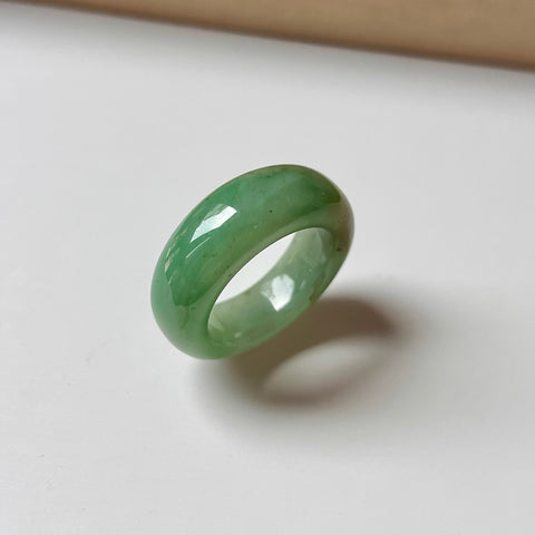SOLD OUT: 18.1mm A-Grade Natural Green Jadeite Abacus Ring Band No. 161531