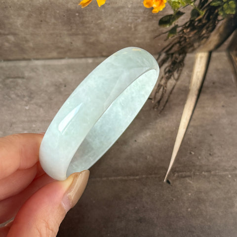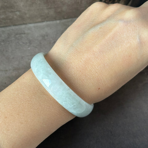 52.8mm A-Grade Natural Light Green Jadeite Modern Round Bangle No.152143
