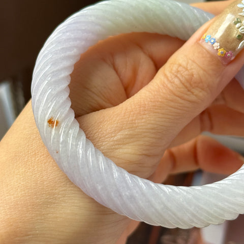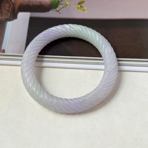 57.3mm A-Grade Natural Lavender Green Jadeite Traditional Round Bangle With Rope Carving No.151876