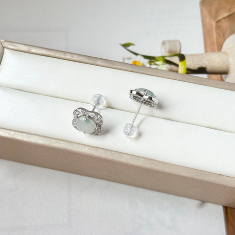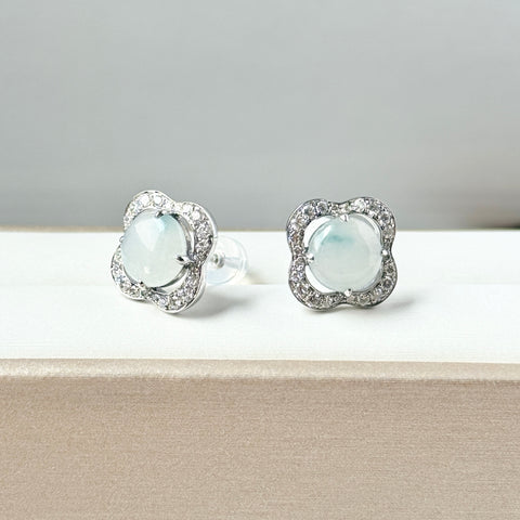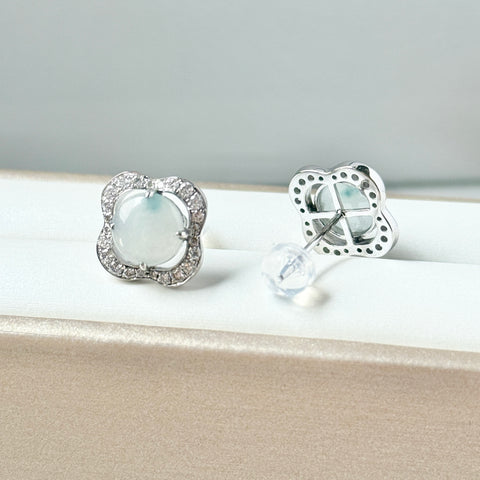 Jadeite mount in 18k white gold with diamonds (D48: 0.48 cts) as a pair of earring studs.