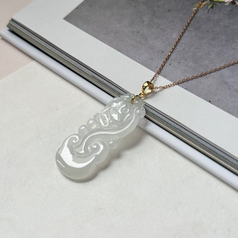 1) Icy A-Grade Jadeite Ruyi Pendant No. 171909