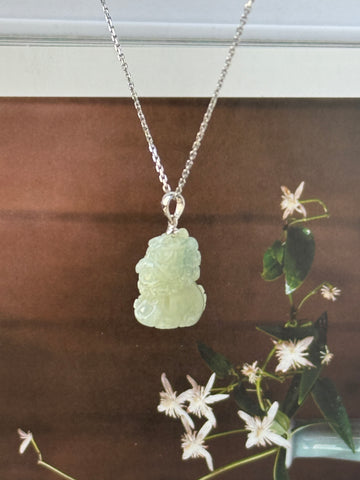 2) A-Grade Natural Light Green Jadeite Ancient Lion Pendant No.172706