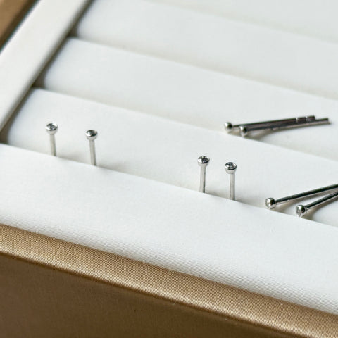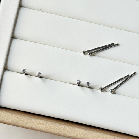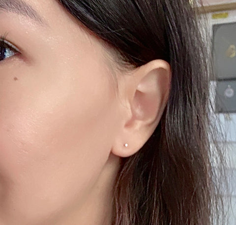 18k solid gold earring studs with diamonds (D2:0.02 cts). Available in white gold.
