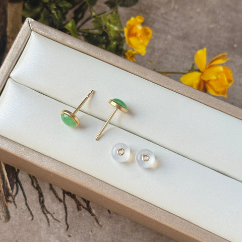 Jadeite mount in 18k champagne gold (matte finish) as earring studs.