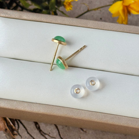 Jadeite mount in 18k champagne gold (matte finish) as earring studs.