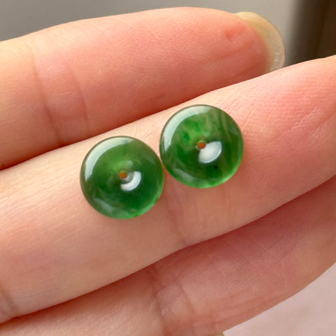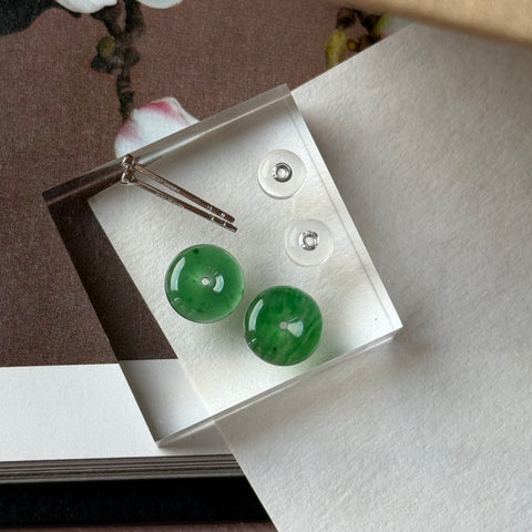 Icy A-Grade Natural Imperial Green Jadeite Donut Stud Earrings No. 180901