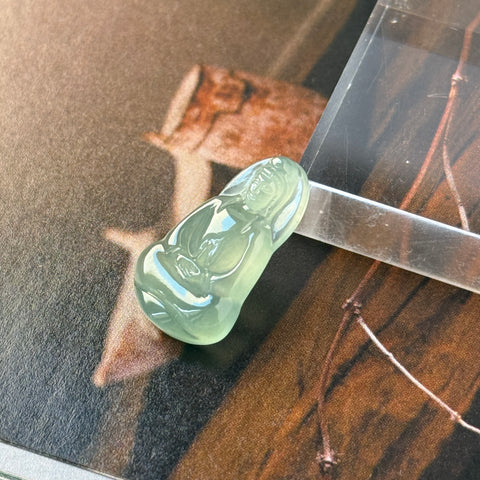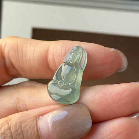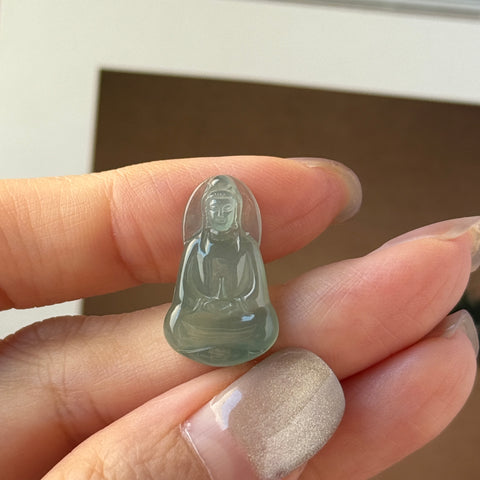 Icy A-Grade Natural Bluish Green Jadeite Goddess of Mercy Pendant No. 172733